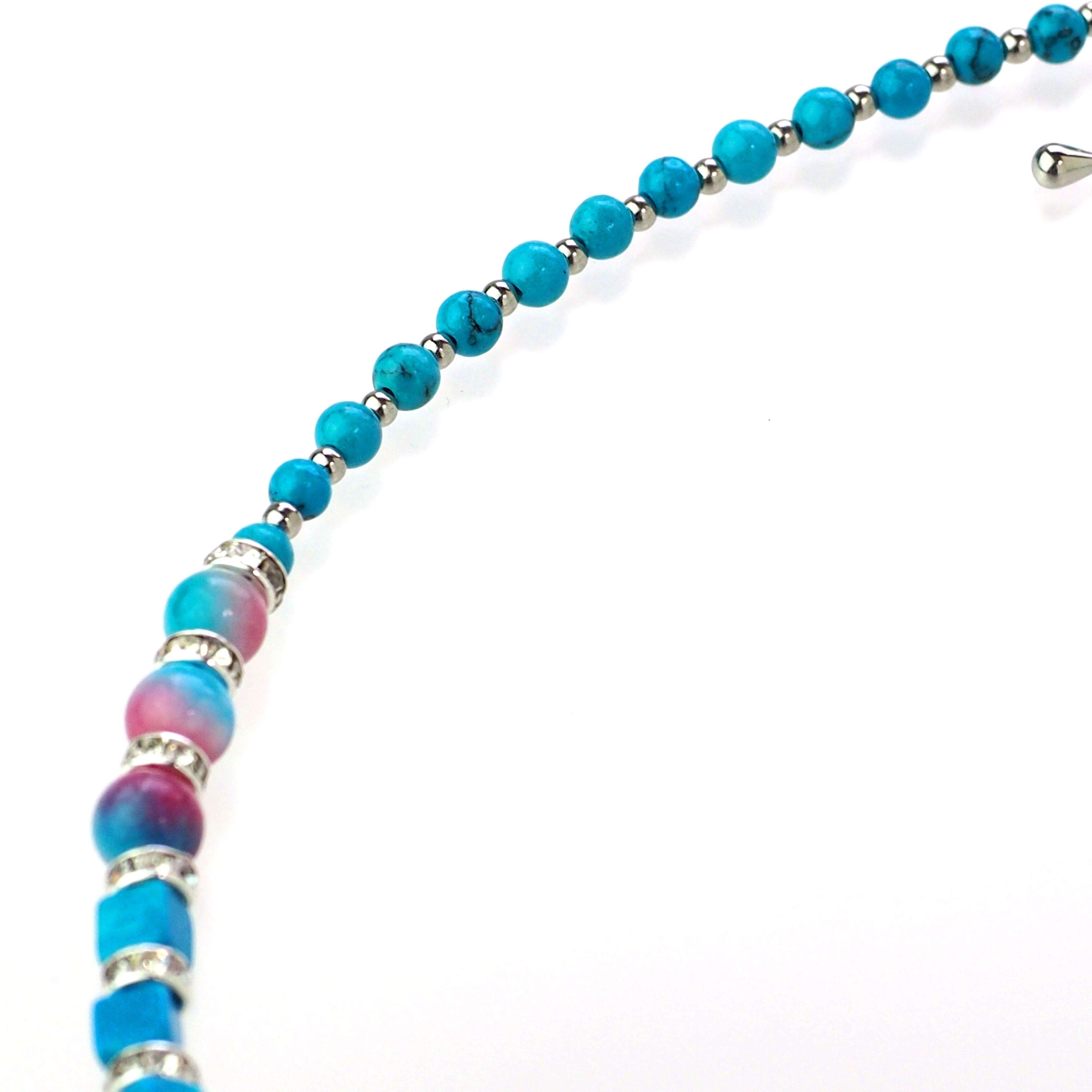 ハウライトターコイズ・ターコイズ(練り)・キャンディジェード・金属(真鍮)・ガラス・ステンレスワイヤー